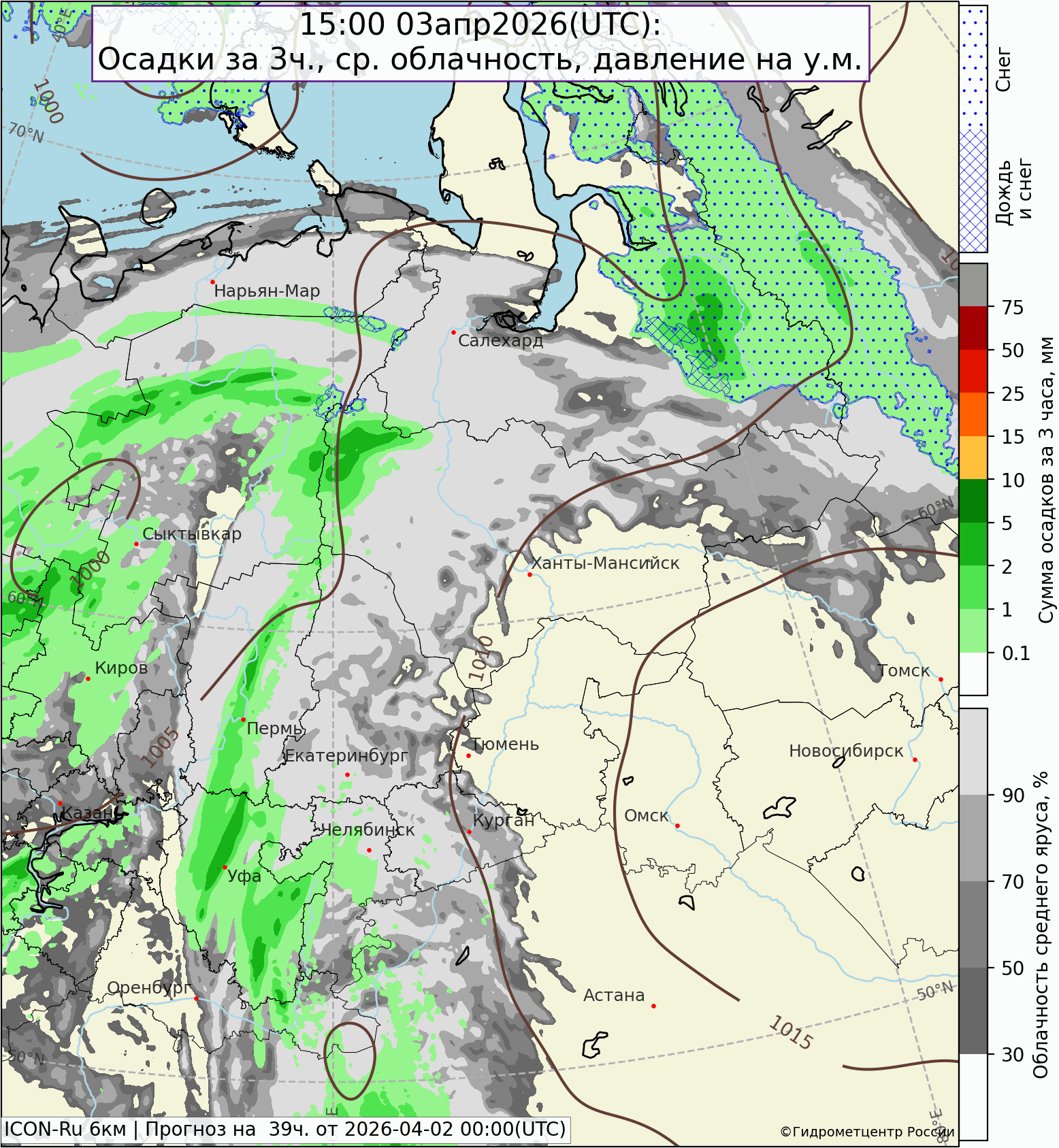 Прогноз облачности, осадков, температуры днем 3 апреля