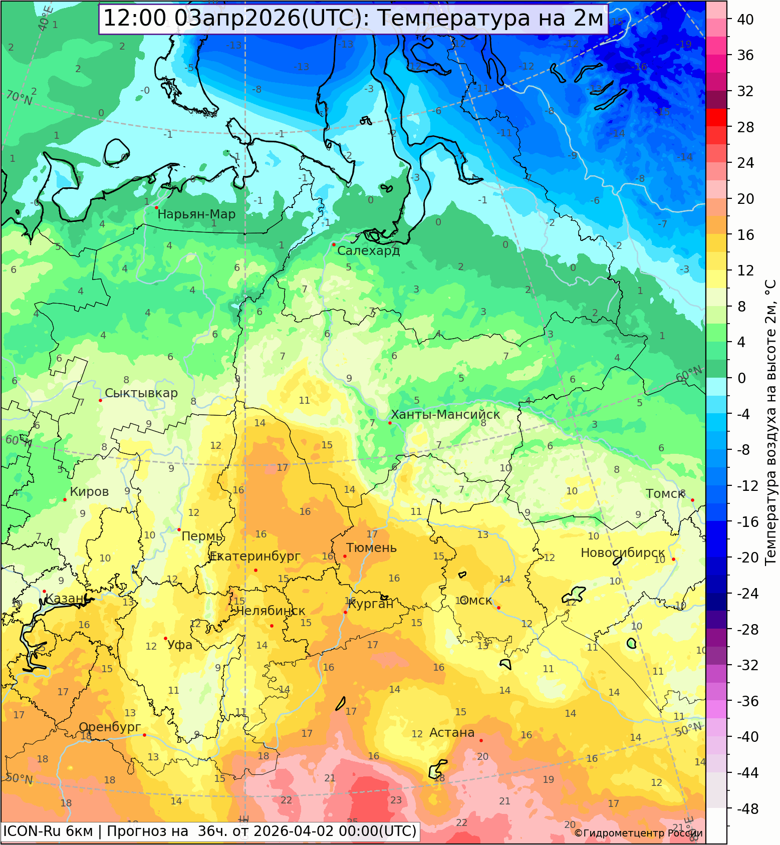 Средняя суточная температура 1 апреля составила на севере области +1,+5°, на юге +5,+8°, в Екатеринбурге 10°. Днем воздух прогрелся до 13-19°, ночью 2 апреля было 0,-5°, местами +1,+4°. Екатеринбург: днем 16,5°, ночью +3,2°.