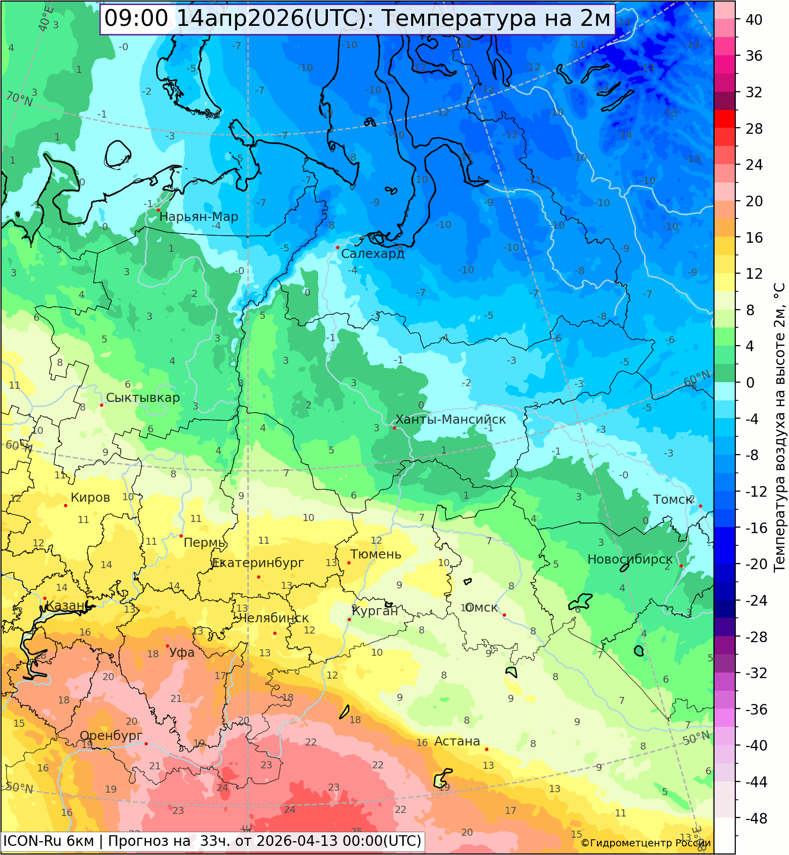 Погода в Свердловской области с 08 ч. 12 апреля до 08 ч. 13 апреля 2026 г.