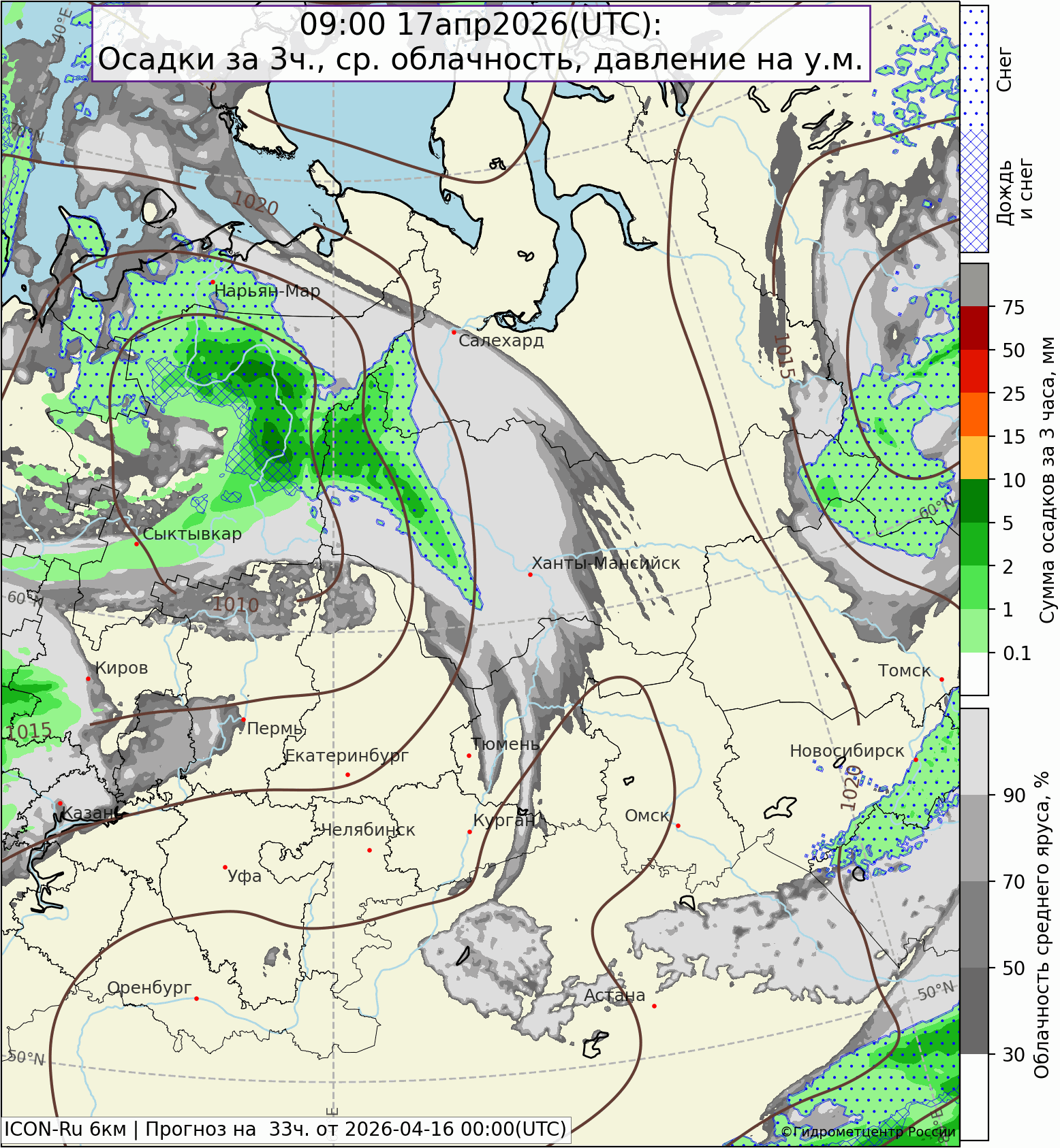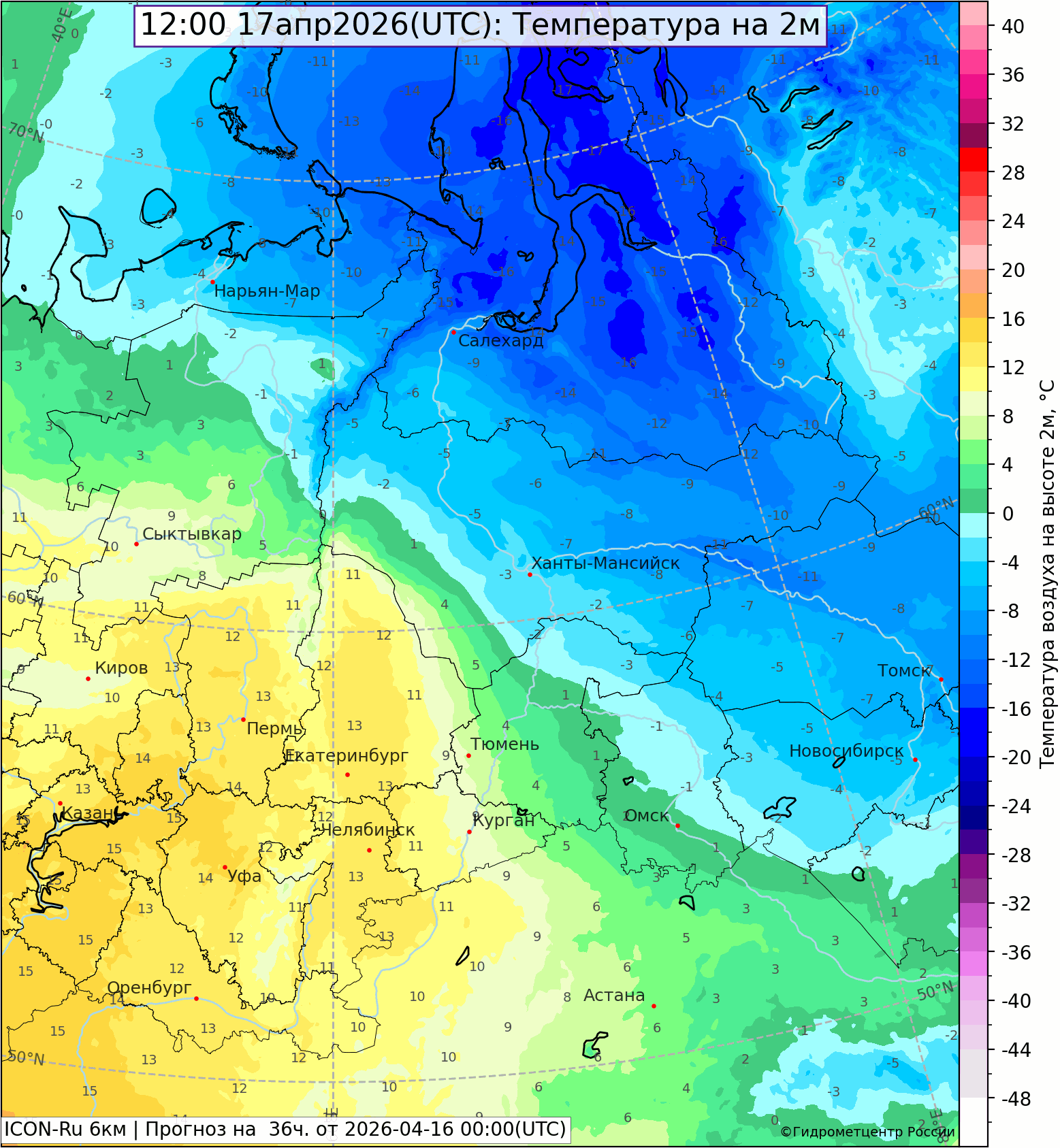 Осадков не наблюдалось, температура воздуха днем была +5,+11°, ночью 16 апреля -1,-9° (холоднее всего в Липовском -9°, Тугулыме, Артемовском -8,6°). Екатеринбург: днем +8,3, ночью -1,4°.