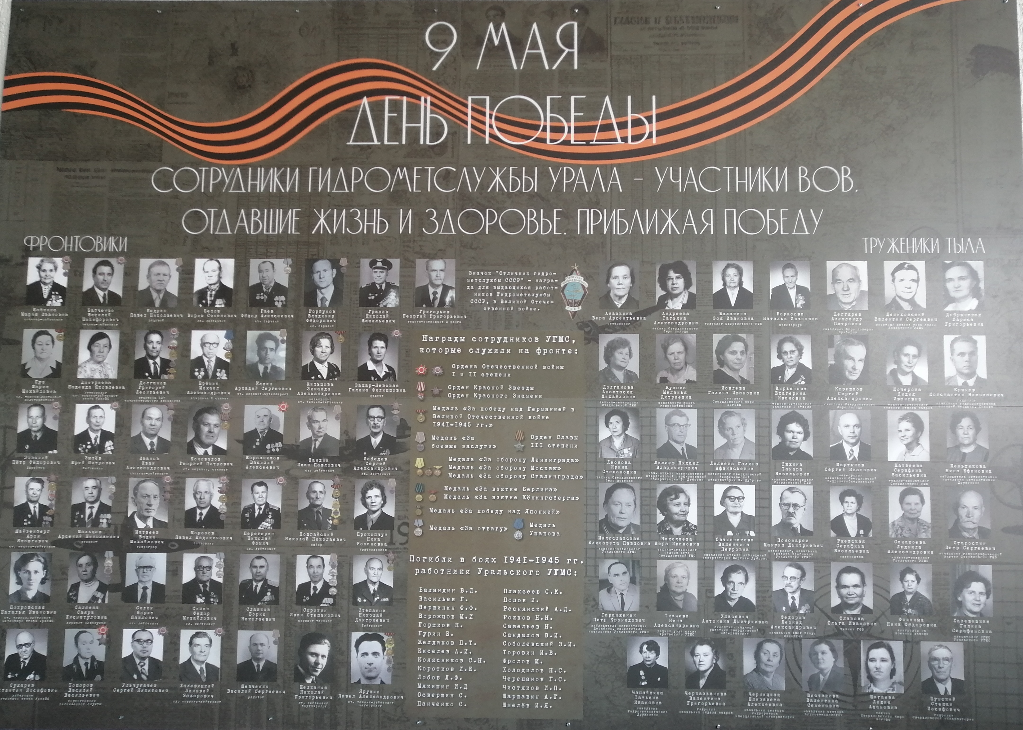 Собравшийся коллектив почтил минутой молчания погибших на полях сражений воинов. Прозвучали выступления о работниках Уральской Гидрометслужбы, участвовавших в борьбе с фашистскими захватчиками, воздали дань памяти труженикам тыла. Накануне Дня победы было организовано посещение пожилых ветеранов Гидрометслужбы с вручением цветов и подарков.